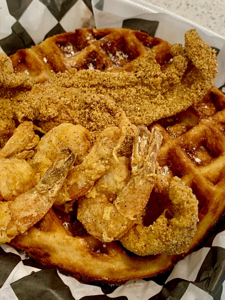 what’s the deal? fried chicken and fish on waffles