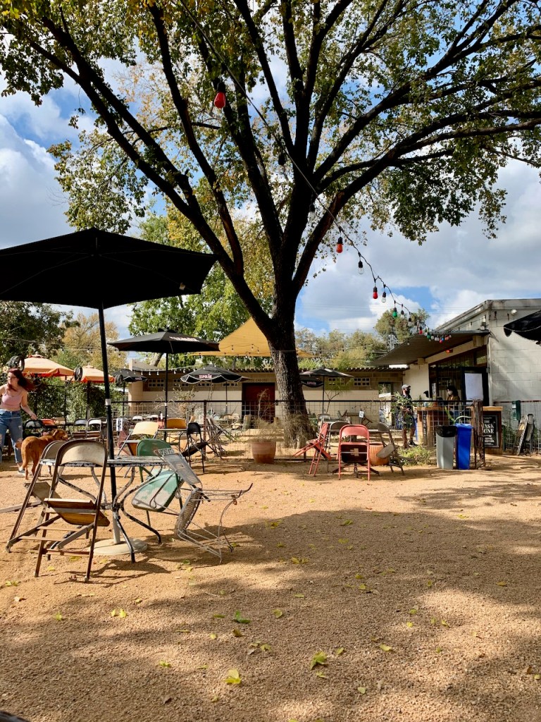 Similarly, Kinda Tropical doesn’t disappoint. Serving as a sort of punk community center in Deep East Austin, Kinda Tropical can be what you want it to be: part coffee house, part bar, part restaurant, part music venue, and part craft show (the latter two more evident before The Time of the Vid). The punkiness comes from the unpretentious, you-can-do-anything-you-want vibe as well as the clientele, which favors the hipper, artier side of Austin not living on trust funds. Sitting at a table in the large outdoor patio reminiscent of a pared-down Spiderhouse reminded us of the early 90s, pre-internet Austin when there were oodles of creativity and energy but not oodles of money, yet everything still seemed possible when you were with your friends. Back in those days, the beer list was (1) Shiner Bock, and a mixed drink was when your Shiner Bock went to the wrong table. My, have times changed.