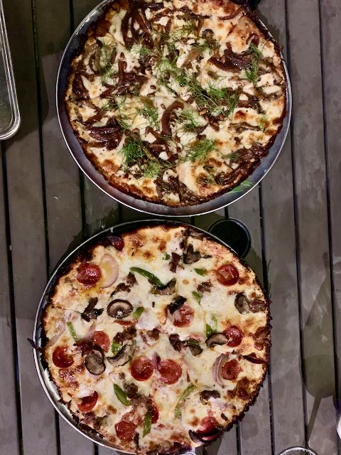 April 2022 update: Shortie’s have become a frequent spot for us since their pizza is ssssoooooo good (again, a “weight-watchers” version of Via 313’s Detroit-style pizza). We recently visited in person for the first time (now that covid-19 has died down…). Just as good, of course, but nifty to sit on the rooftop patio and get everything fresh from the kitchen.
