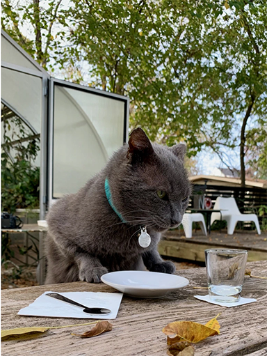 In terribly sad news, just after his food co-writing debut last issue, doctors diagnosed Geoff the Ditch Cat with large-cell lymphoma, essentially a death sentence. He didn’t respond well to chemo and passed away mid-March, leaving us hopelessly heartbroken. That cat loved pizza but would go BONKERS for East Side Pies’ pepperoni and roasted green chile. Leave a smidge out for him the next time you partake.