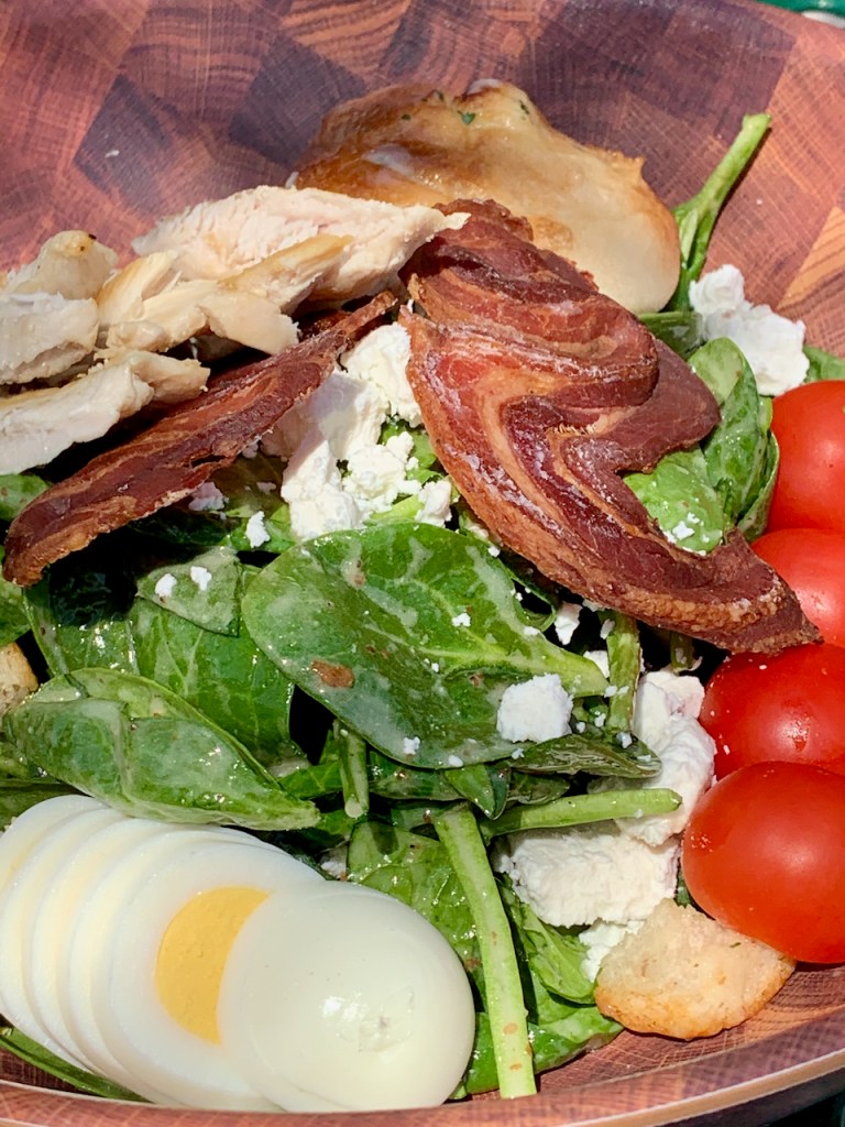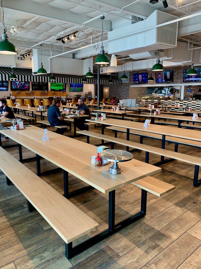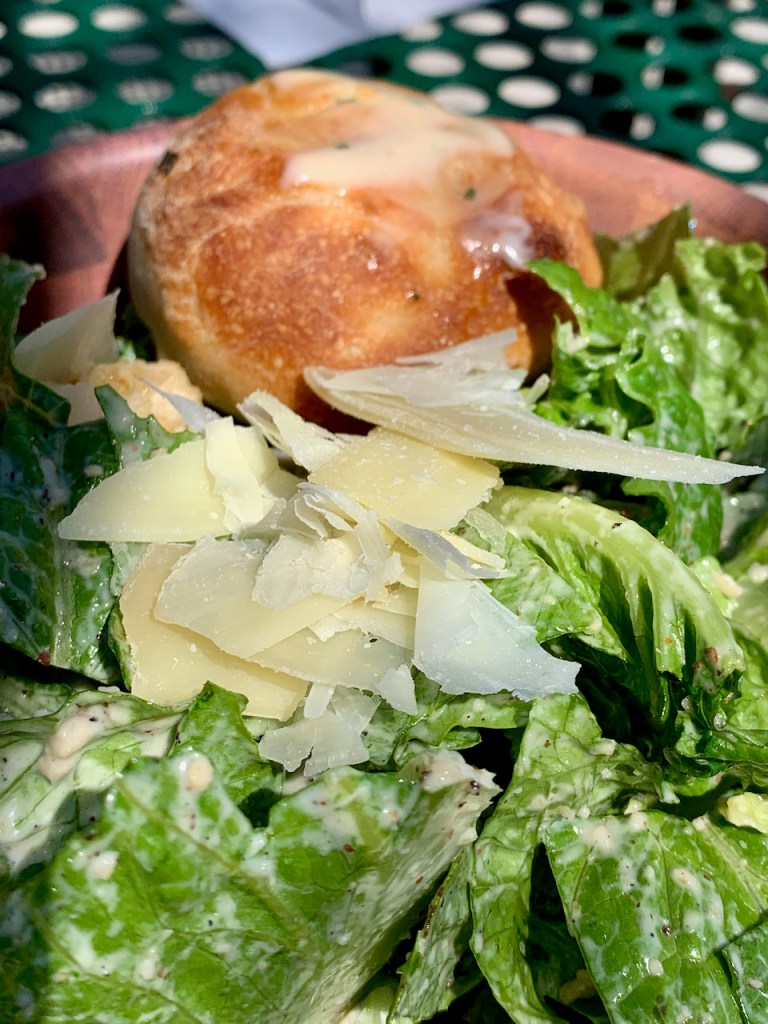 On a second visit to try out the patio, we found the staff friendly and helpful while we ordered and enjoyed the Homemade Lasagna (Italian sausage, ground beef, marinara, ricotta, mozzarella, and parmesan; $14) and the Spinach & Goat Cheese Salad (pancetta crisp, croutons, goat cheese, egg, cherry tomatoes, red onions, and honey mustard vinaigrette; $11). We both wow’d the lasagna, a baptism of immersive tomato flavor and lavish cheese-and-beef richness. Ordering is fast casual (and indoors). Insider tip: Order a small side salad with your lasagna and get an extra garlic knot for your plate (plus whatever benefits a salad gives you).