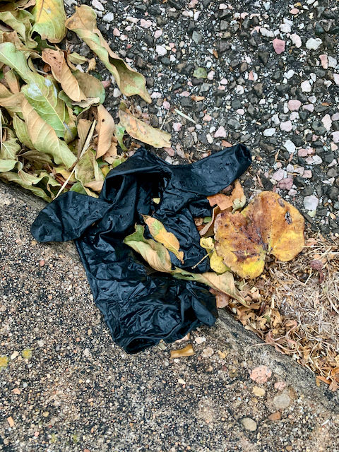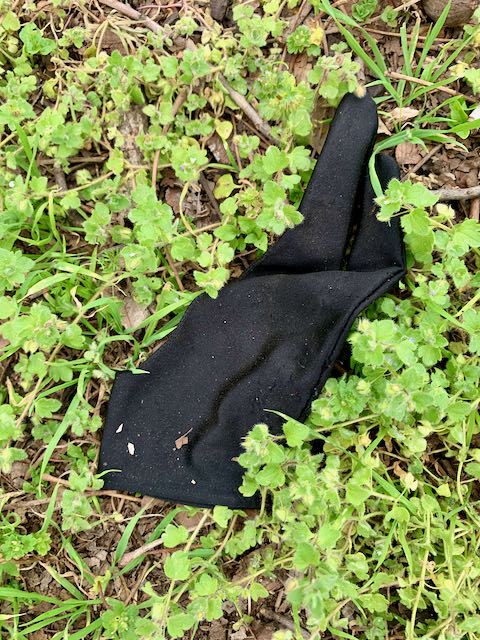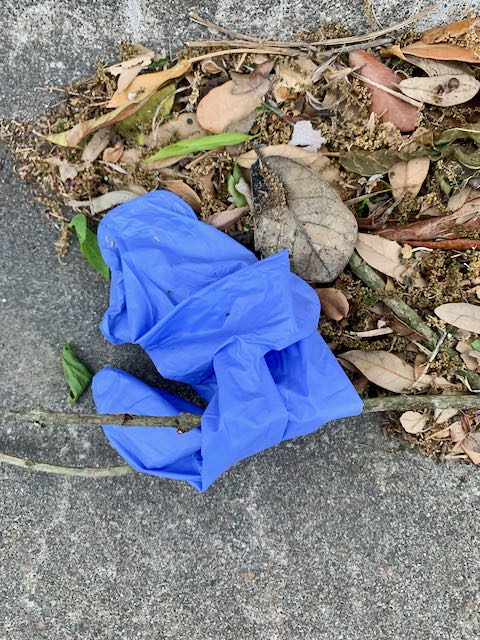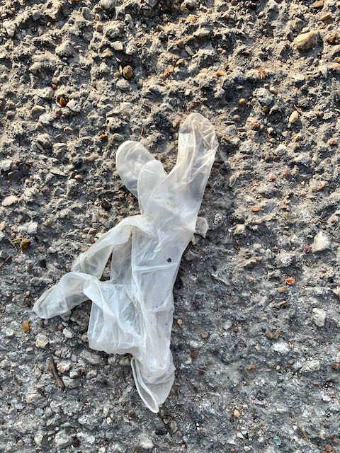 Sadly, these gloves are everywhere, part of our every day pandemic life and, accordingly, litter. Remember: litter on the land is also litter in our waterways. Please dispose of your gloves properly. This is art that shouldn’t be.