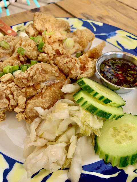 Not aware of the size of the catch-of-the-day, we also ordered the Thai-Kun Fried Chicken (fried chicken thigh, cucumber, boom sauce, and jasmine rice; $15). The chicken was nicely fried, with a crunchy, bready crust with not enough boom sauce. Coming after the fish dish, it was good, but paled in comparison.