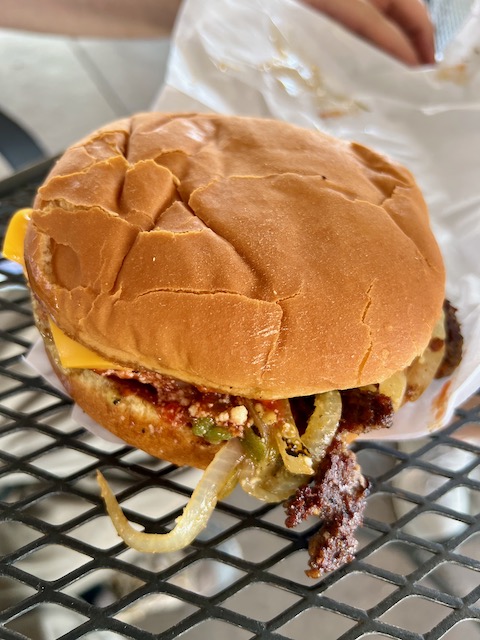 Hi-D-Ho brands itself as “Home of the Tiger Burger,” a patty-patty voted the #1 cheeseburger in Otero County. And, woo-wee, it was dang good! Large with a perfect balance of beef, cheese, and chile flavors, I was in heaven, the best green chile cheeseburger I’ve had since I’d had a revelation of a burger in Carrizozo some 20 years ago. Due to my excitement for diving into my burger, I didn’t take a photo of the fries, which were thick, crispy, and perfectly complemented the burger.