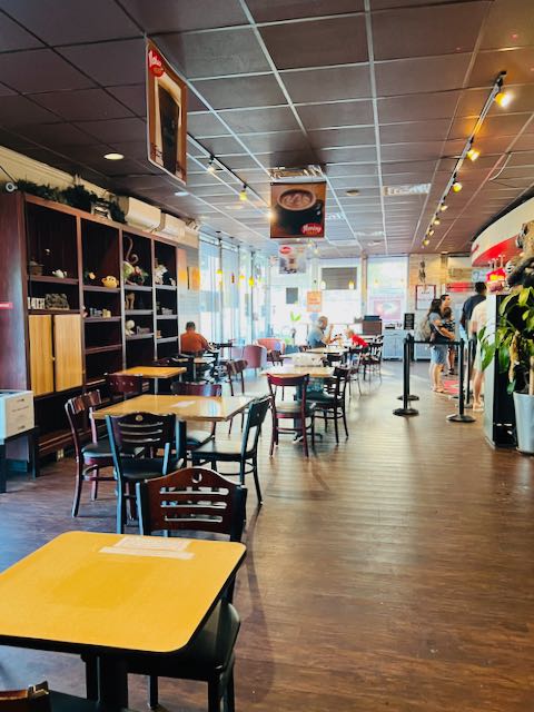 On a recent visit to meet with the wrong Johanna/Joanna to talk about climate change, I went full monkey with the Spicy Monkey Mocha (with chocolate, cinnamon, and cayenne; $5), a Hungry Monkey breakfast taco ($5.5), and a Monkey Muffin ($4.5). I’m generally boring with my beans, preferring my java straight-up with none of the fancy or sweet. Still, the Spicy Monkey was pleasurably tasty, much heavier on the cinnamon than the cayenne. And I just noticed the Monkeys Uncle on the menu, a latte with peanut butter, banana, and chocolate!