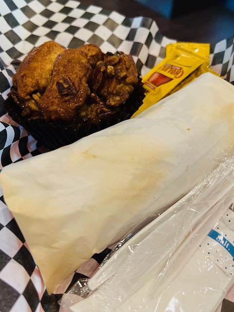The Hungry Monkey was a solid breakfast taco with a bit of everything in it (sadly, the Monkey doesn’t post its menu, so I couldn’t discern exactly what was in it [hopefully not Rhesus pieces]). The Monkey Muffin was a bit of dietary overkill after inhaling the Hungry Monkey, but I put my life on the line every day for our dedicated readers, so I dove in. And it was a sticky, nutty, and delicious mess that brought back pleasant memories of making monkey bread with mom in the early 80s. Culinary side notes: (1) monkey bread has its origins in the Hungarian treat, arany galuska, and (2) Nancy Reagan served monkey bread every Christmas. Monkey Nest’s muffin-sized version is appropriately scaled down and even better than the full bread.