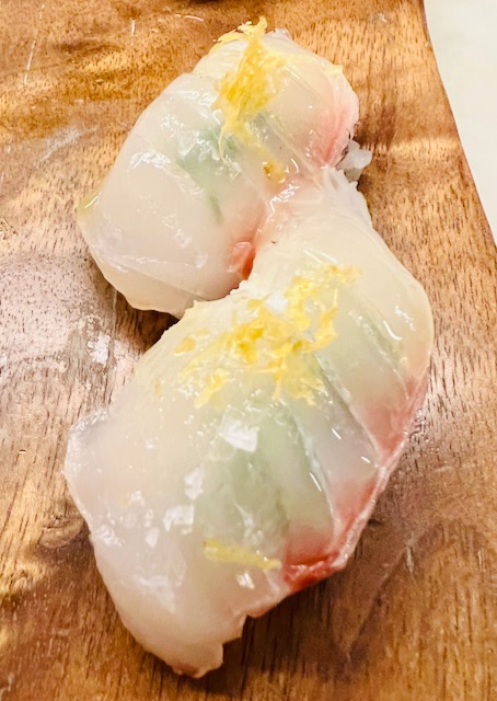 With the helpful input of our personal sushi chef, we tried a variety of dishes, including bluefin zuke nigiri, masu crudo, hama chili, and the hot rock flank. Since we were there relatively early, we also partook of several happy hour specials, including nigori, murasakino, bluefin akami nigiri, and bincho nigiri. Our chef even comped us a dish because he wanted us to try it.