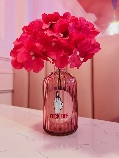 After bathing in an explosion of pink and DJ-spun reggaeton upon entering and getting seated, the salsa sampler ($6) arrived with four tasters of tomatillo, molcajete, chipotle, and salsa taquera and a large basket of spiced chips that complements and lasts through dinner. I’m a sucker for a good molcajete, and this one fit the bill with smokey flavor and plenty of peppers. The chipotle was saucy and flavorful but not spicy. The bride had a Pink Margarita Clasica on the rocks ($10), and I imbibed the New Year New Fkn Me special (Tito’s, black cherry, champagne; $14), which came in a pouch with with a tiny disco ball (yeah!). The trademarked Anti Bitch Juice similarly arrives in a pouch (and is similarly pink). There’s also a shot called X Boyfriend.