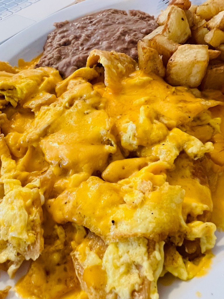 huevos motelenos at Kirbey Lane Cafe (San Marcos)