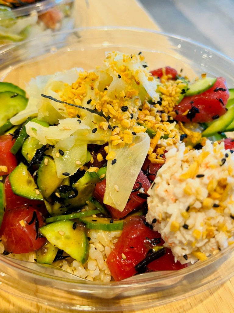 The Bride enjoyed the sauce in the Hawaiian Ahi (Ahi tuna, cucumber, sweet onion, hijiki seaweed, edamame, Pokeworks Classic sauce, chili flakes, seaweed salad, green onion, sesame seeds, and seasonal crunch; $13.50) and preferred it to the Umami (Ahi tuna, cucumber, sweet onion, hijiki seaweed, edamame, Umami Shoyu flavor, surimi salad, pickled ginger, green onion, sesame seeds, garlic crisps; $13.50), but to each her own.
