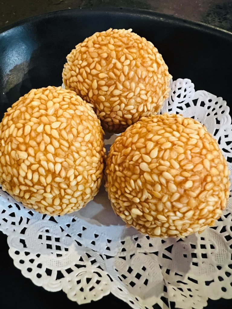 We didn’t need dessert but, for you, dear readers, we partook of the Sesame Ball (fried sweet rice dough with sesame coating and red bean filling; $5.5). Perfect in presentation and mildly sweet, they brought back memories of Ja Duo, a family friend who made them for us many years ago.