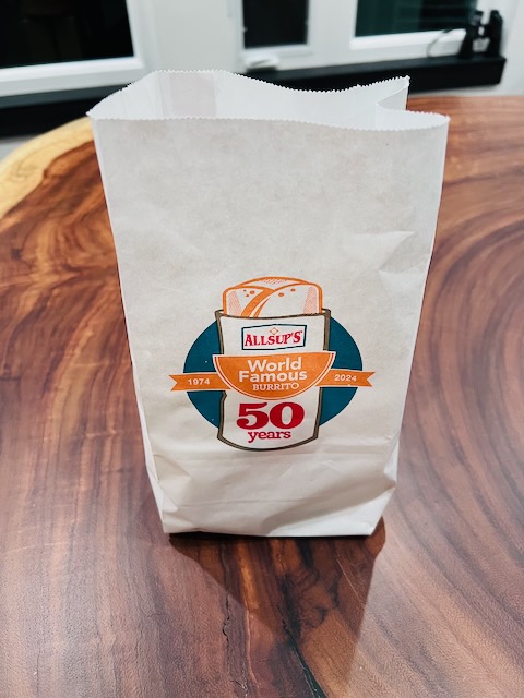 Legend has it that the flagship Allsup’s wasn’t having much success selling their burritos until an employee fried them in the fryer and sold them out instantly. That was back in September of 1974, so this is the 50th anniversary of the creation of the Allsup burrito (which technically isn’t a burrito at all; it’s a chimichanga). The original was ground beef and bean joined later in the fry-basket with shredded beef and chicken versions.
