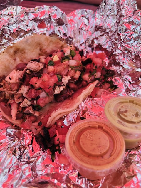Blair also slings other dishes. Most notable are his epically good quesadillas in which that crisping magic elevates them into the best in town. If the prices scare you (regular burritos or quesadillas [protein, rice, pinto beans; $12], super burritos or quesadillas [protein, rice, pinto beans, guacamole, sour cream, and Monterey Jack cheese; $14]), note that one order is enough for two people. The tacos are large (“I just needed one of these,” The Bride proclaimed) and good but not exceptional like the burritos and dillas. Bowls (aka burritos sans tortillas) are also in the playbook. You can order items regular or super, the latter adding guacamole, sour cream, and two to three bucks to the bill. I supe everything because I appreciate the contrast in texture and temperature.
